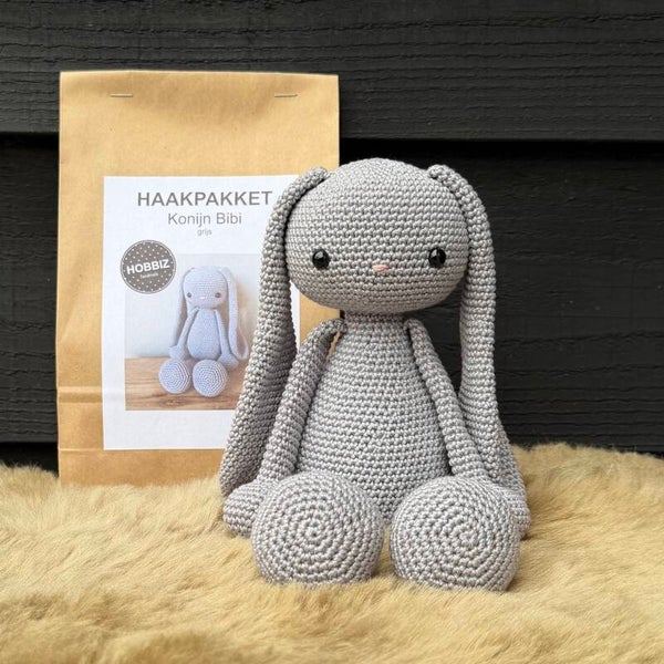 In dit haakpakket zit het patroon, veiligheidsoogjes en alle benodigde garens om dit leuke konijntje te haken.