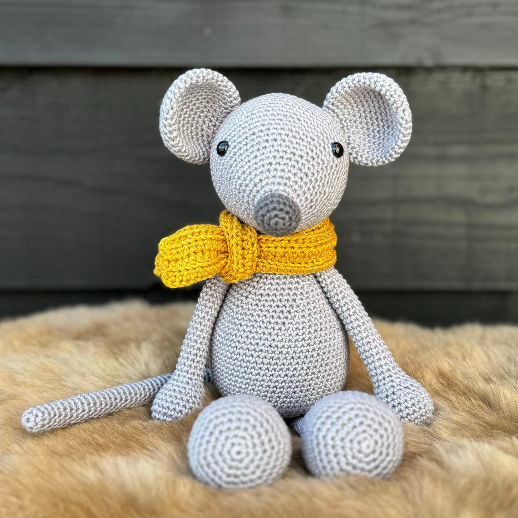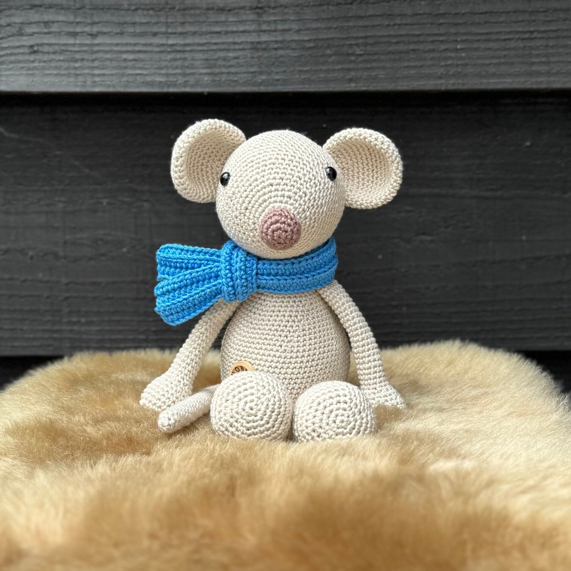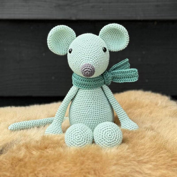 In dit haakpakket zit het patroon, veiligheidsoogjes en alle benodigde garens om deze lieve muis te haken.